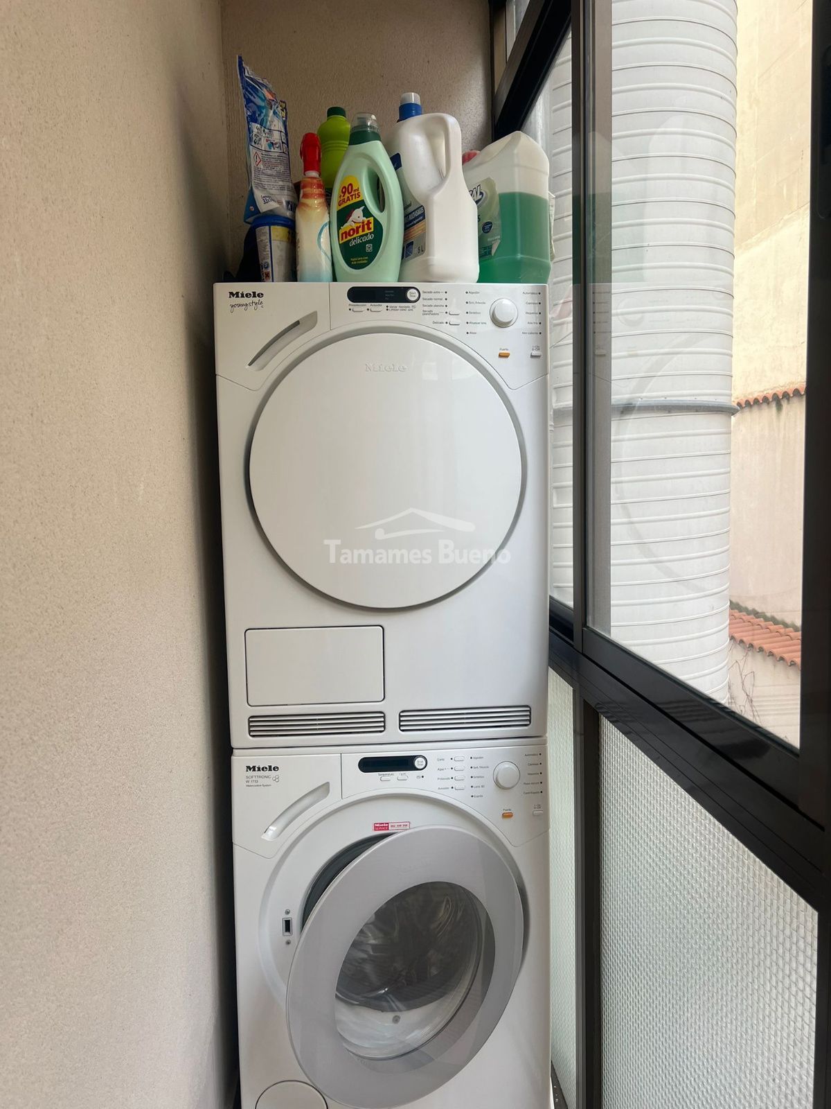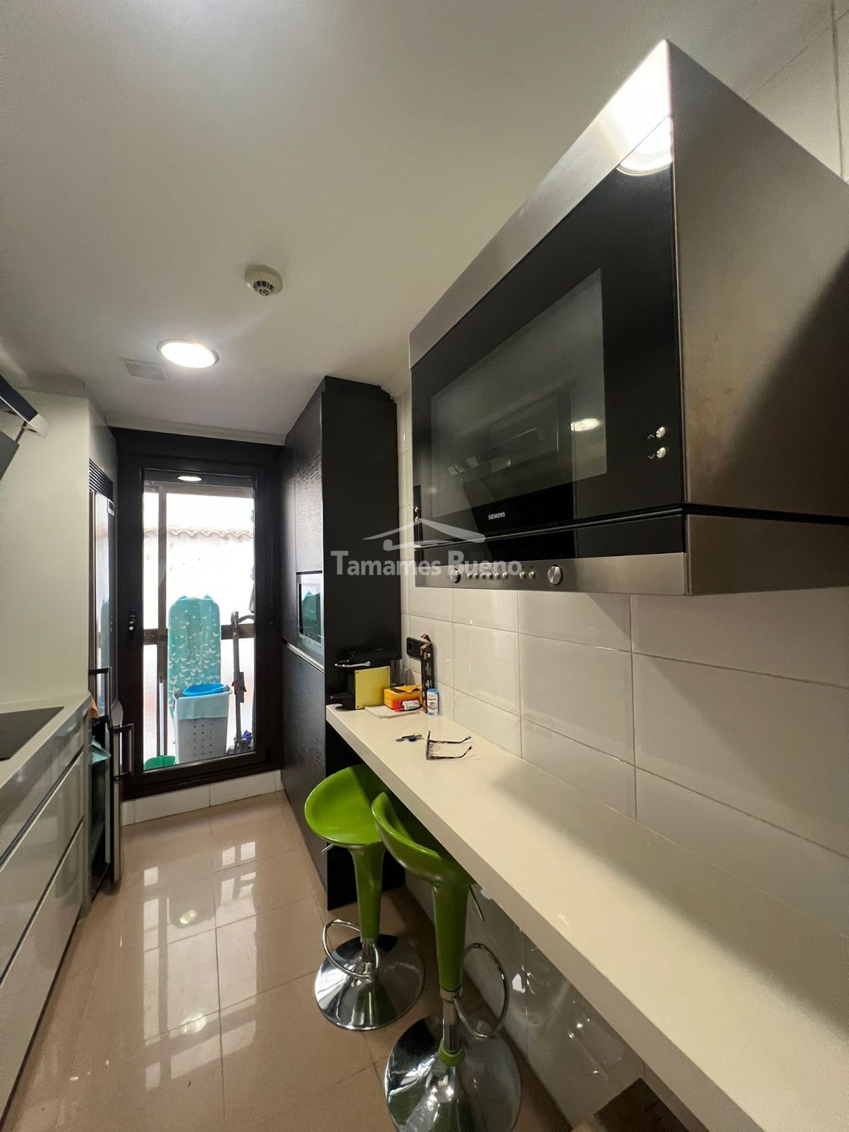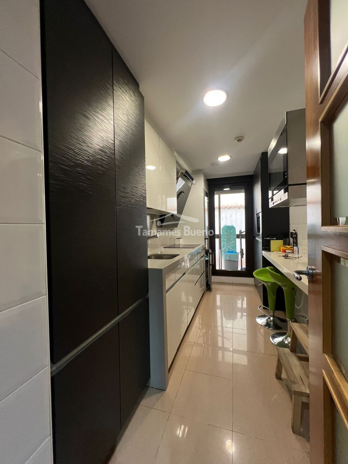 La cocina de diseño italiano, totalmente equipada con electrodomésticos, (horno, lavavajillas, etc), combina funcionalidad y estética. Desde ella se accede a un balcón donde se encuentra la zona de lavandería, equipada con torre de lavado y secado.