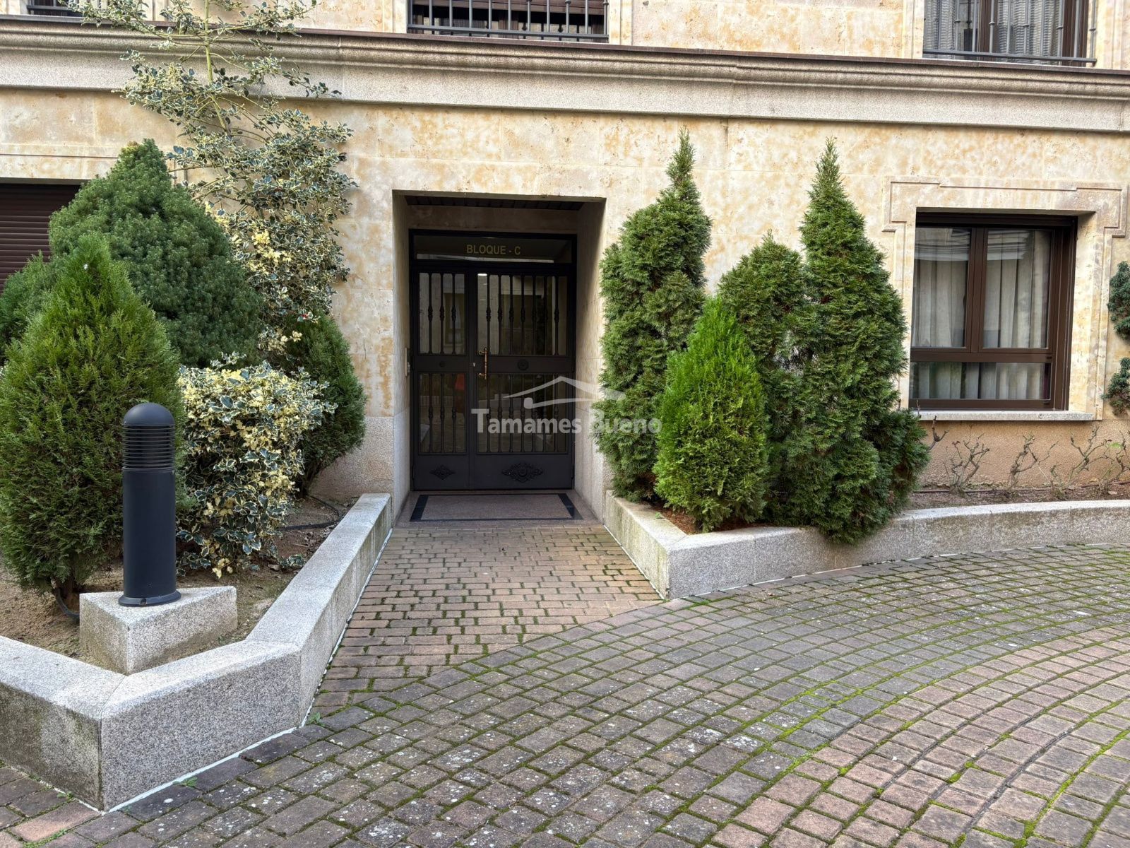 Es una magnífica vivienda situada en la Ronda Sancti Spíritus, en pleno corazón de Salamanca, Ubicada en una construcción reciente con elegante fachada de piedra de Villamayor, forma parte de una urbanización privada con patio comunitario que da acceso a varios portales, lo que aporta un entorno tranquilo y reservado sin renunciar a vivir en el centro de la ciudad.